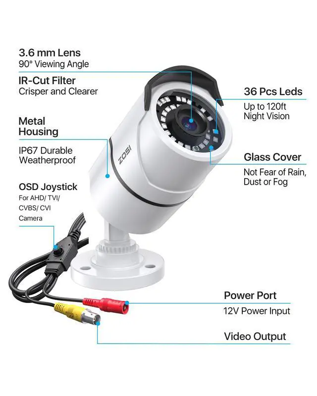 To have a complete CCTV system, it is a best choice to connect a ZOSI DVR(not included), realizing 24/7 surveillance.