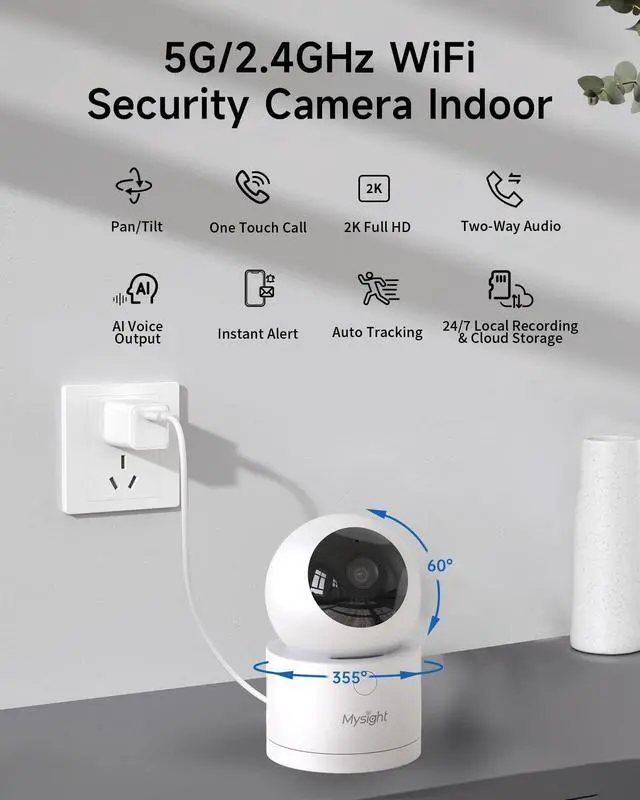 [5G & 2.4G] 2K Pan/Tilt Security Camera Indoor for Home, AI Voice Change for 2-Way Talk, Motion Detection, Night Vision, 24/7 SD Recording/Cloud Storage, WiFi Home Camera, Pet Camera with Phone App