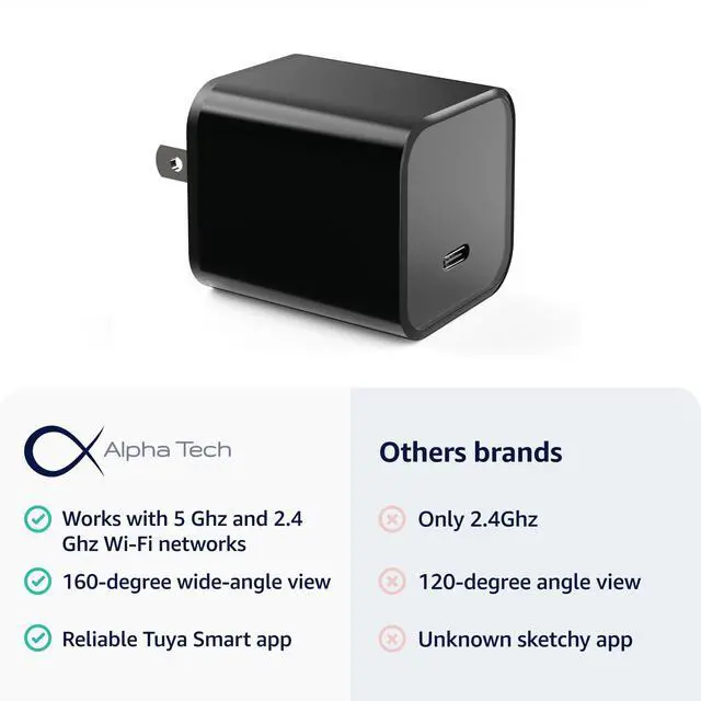 With a 160-degree wide-angle view, our smart camera in a charger captures more area, ensuring comprehensive coverage of your space for enhanced peace of mind.
