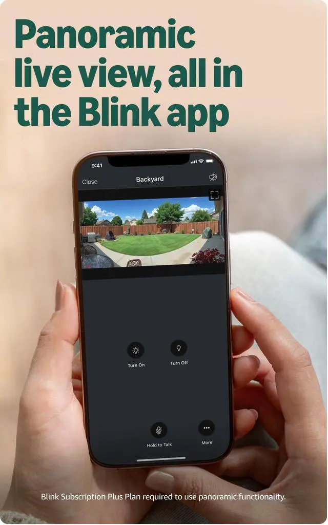 Transform your security with Panoramic Vision Get a quick 180º snapshot of what's happening around your home, available with a Blink Subscription Plus Plan (sold separately).