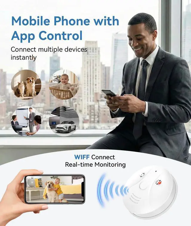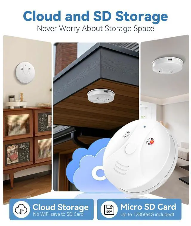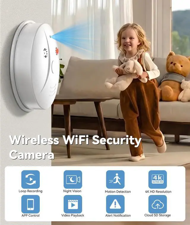 4K HD Wireless WiFi Indoor Camera Smoke Detector for Home Security with App Control & Motion Detection,Outdoor Camera with Night Vision & Loop Recording for Office/Garage/Shop,Easy to Use & Install