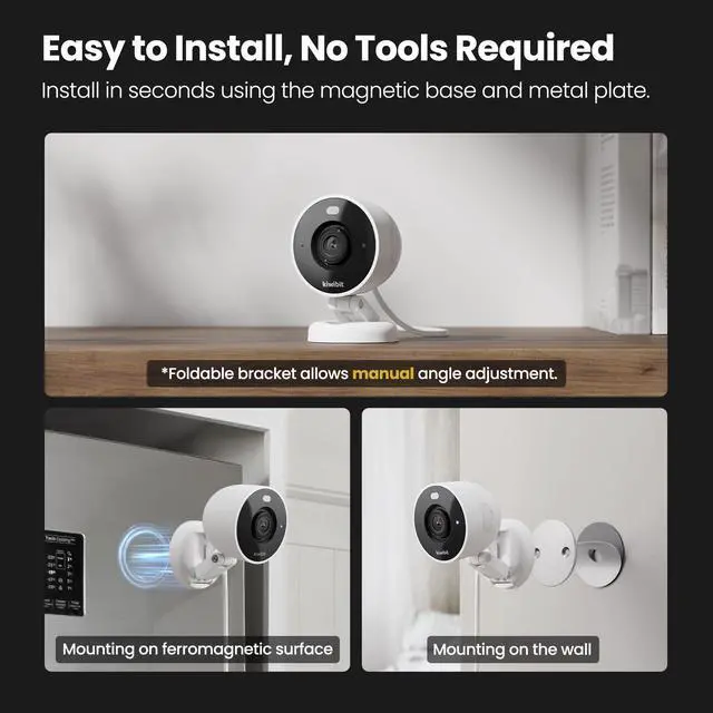 The Kiwibit 2K security camera delivers ultra-clear videos with sharp details, so you never miss important details. With full-color night vision up to 33 ft, this home security camera captures vivid images even in complete darkness or low light. Whether used as a baby monitor, pet camera, or indoor security camera, it provides dependable protection and peace of mind day and night.