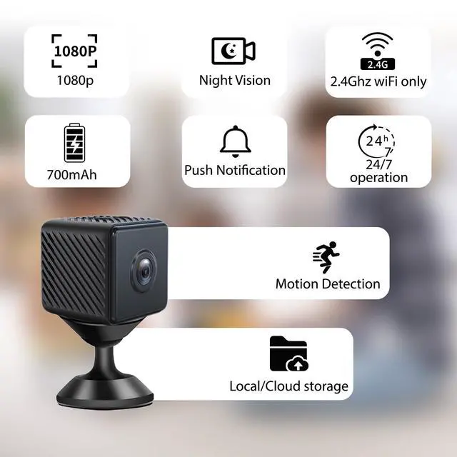 Mini Camera 2026 Upgrade Security Wireless Camera Small Home WiFi 1080P Micro Magnetic Nanny Cam with Motion Detection Wide Angle Cloud & SD Storage Night Vision No Need WiFi Tiny Cameras for Indoor