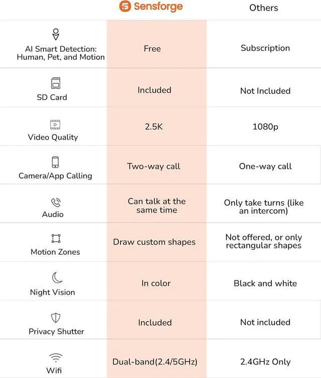 [ 2.5K Full HD Resolution Crystal Clear Detail] See every moment in sharp HD 2.5K clarity. Sensforges indoor camera delivers sharp, high-definition video and picture quality, so you can easily monitor your baby, pets, or home with lifelike detail- day or night.
