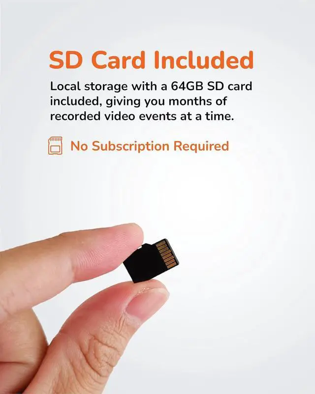 [No Monthly Fees 64GB SD Card Included] Start recording right away with the pre-installed 64GB SD card for local storage. Keep your footage private and secure without relying on costly cloud subscriptions.