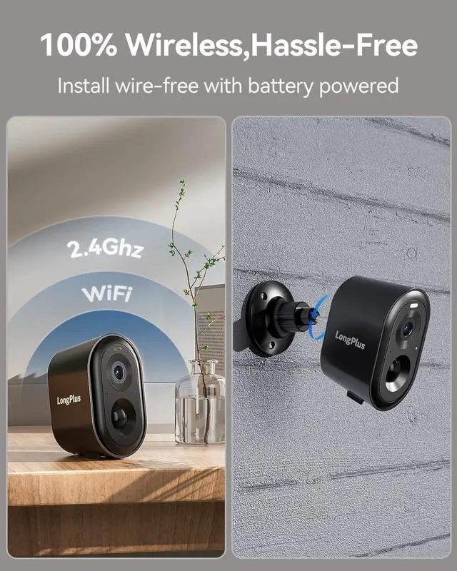 100% Wire-free & Easy Installation - With the 100% wire-free design, the battery operated outdoor security camera requires no complicated wiring or power outlets, you can install it in minutes. If the battery is too low to turn on, charge it.