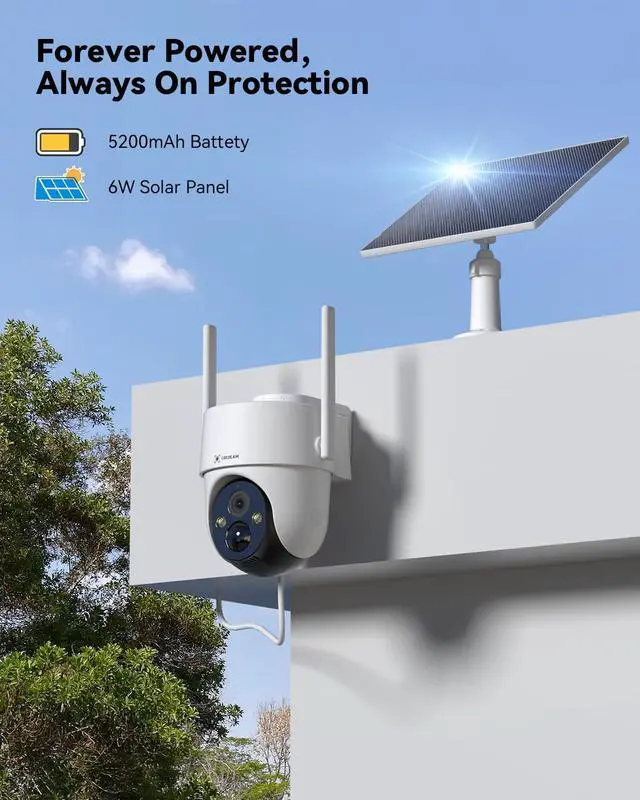 Totally Wireless & IP66 Waterproof: This wireless outdoor camera works on 2.4GH z WiFi. Featuring 5200mAh battery paired with a 6W solar panel, this 4K security camera ensures continuous power without the need for traditional wiring. Its IP66 rating guarantees reliable performance in various weather conditions, protecting against dust and rain.