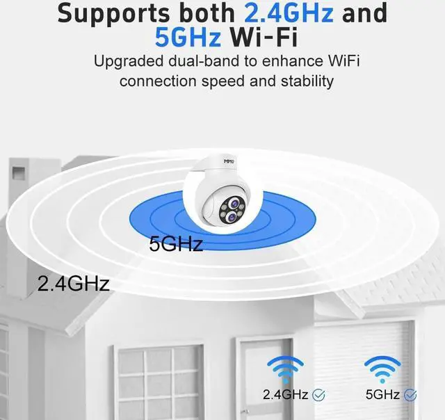 Dual Wifi & Two-Way Audio/Multi-User SharingThe latest 5G/ 2.4GH z dual-band Wifi camera have stronger signal reception, higher stability, longer distance to use, no lag and smoother real-time video compared to traditional 2.4G single-band security camera, built-in microphone and speaker, allowing two-way communication, You can also create multiple accounts and share the wireless security camera with family