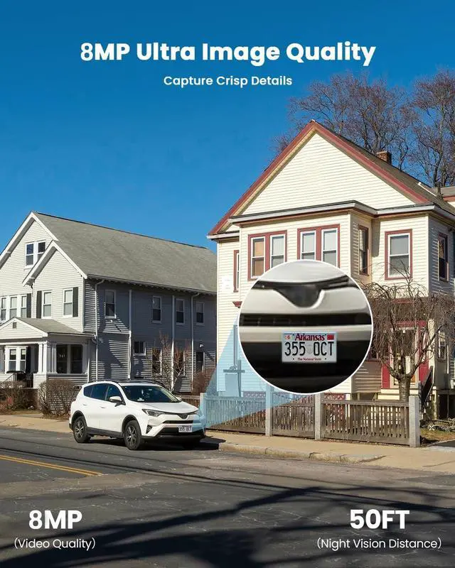 [Upgrade to 8MP Ultra-HD Resolution] Experience exceptional clarity with this 8MP ultra-high-definition resolution PoE security camera. Capture every detail in stunning sharpness for effective monitoring during both day and night. With 4x digital zoom, you can get a closer look at key areas like faces or license plates.