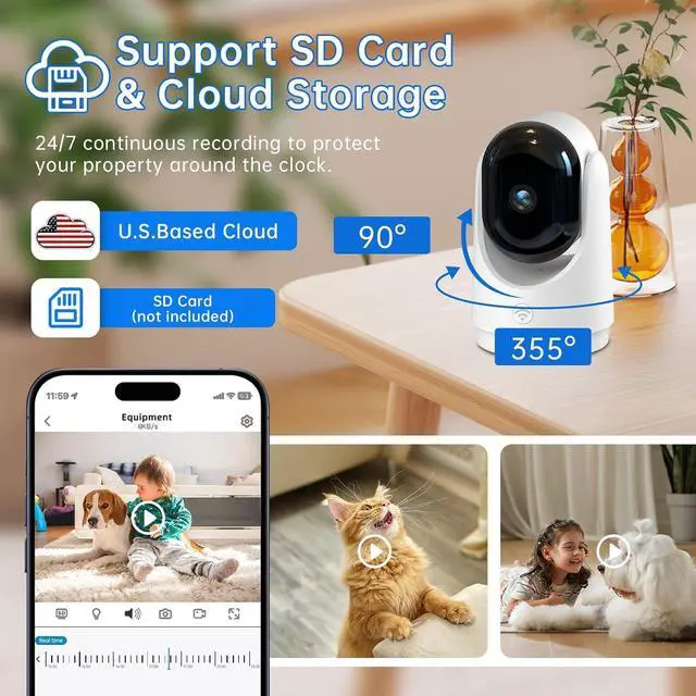 2K HD Image & Full Color Day and Night VisionThis indoor camera support 3MP HD, much clearer than 1080P, cameras for home security ensuring you can see ultra-clear details both day and night. Security camera supports color/infrared night vision. Whether in the faint starlight or complete darkness, security cameras can ensure clear image of objects within 33 ft