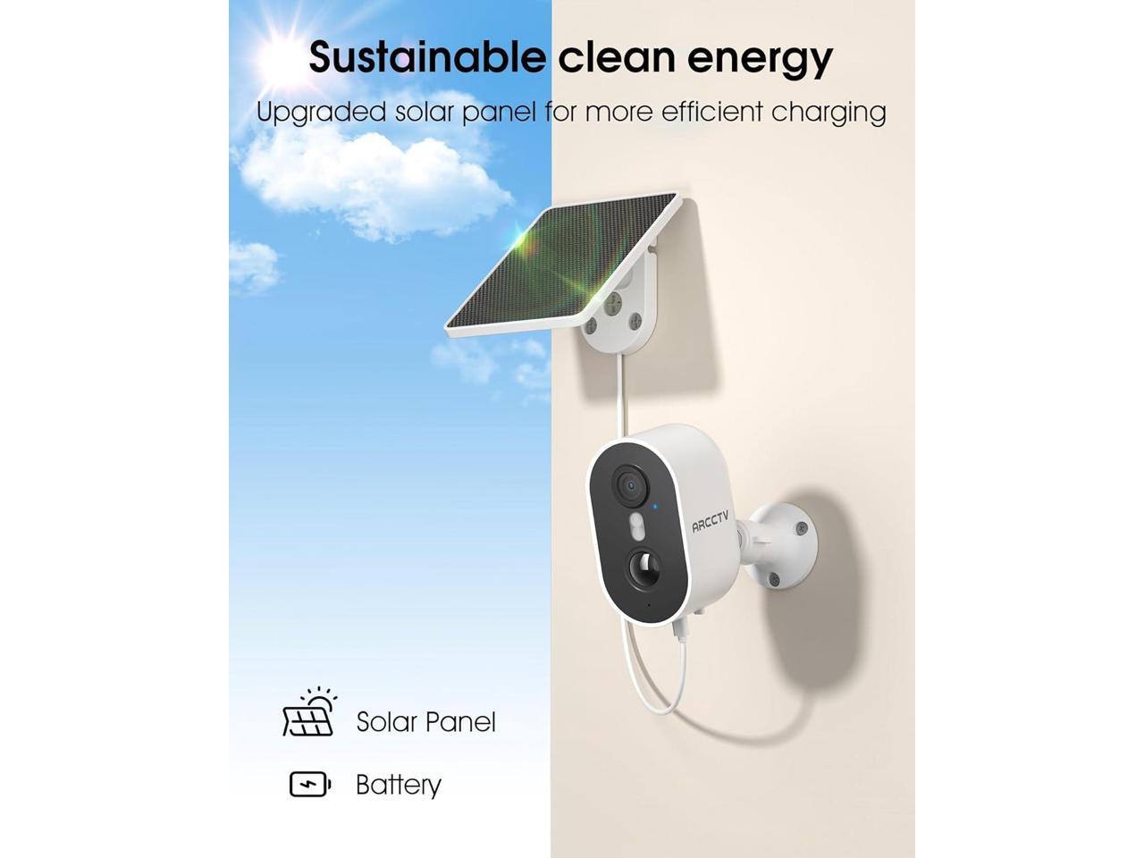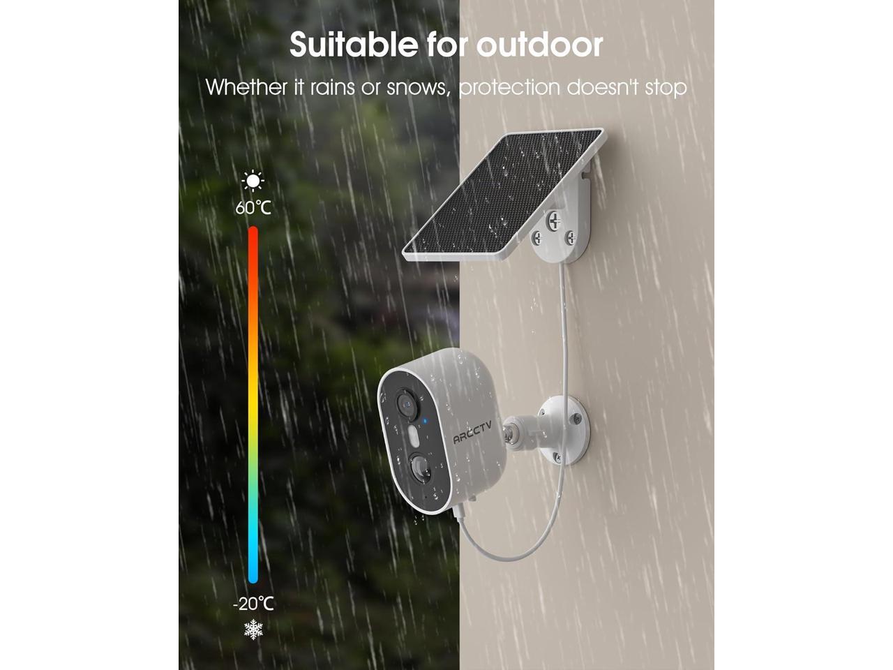- Battery surveillance camera with solar panel: The camera has a built-in battery and an included solar panel, so that the camera is free from external sockets and power cables. A full charge usually lasts for one to three months, even if there is no sunlight.