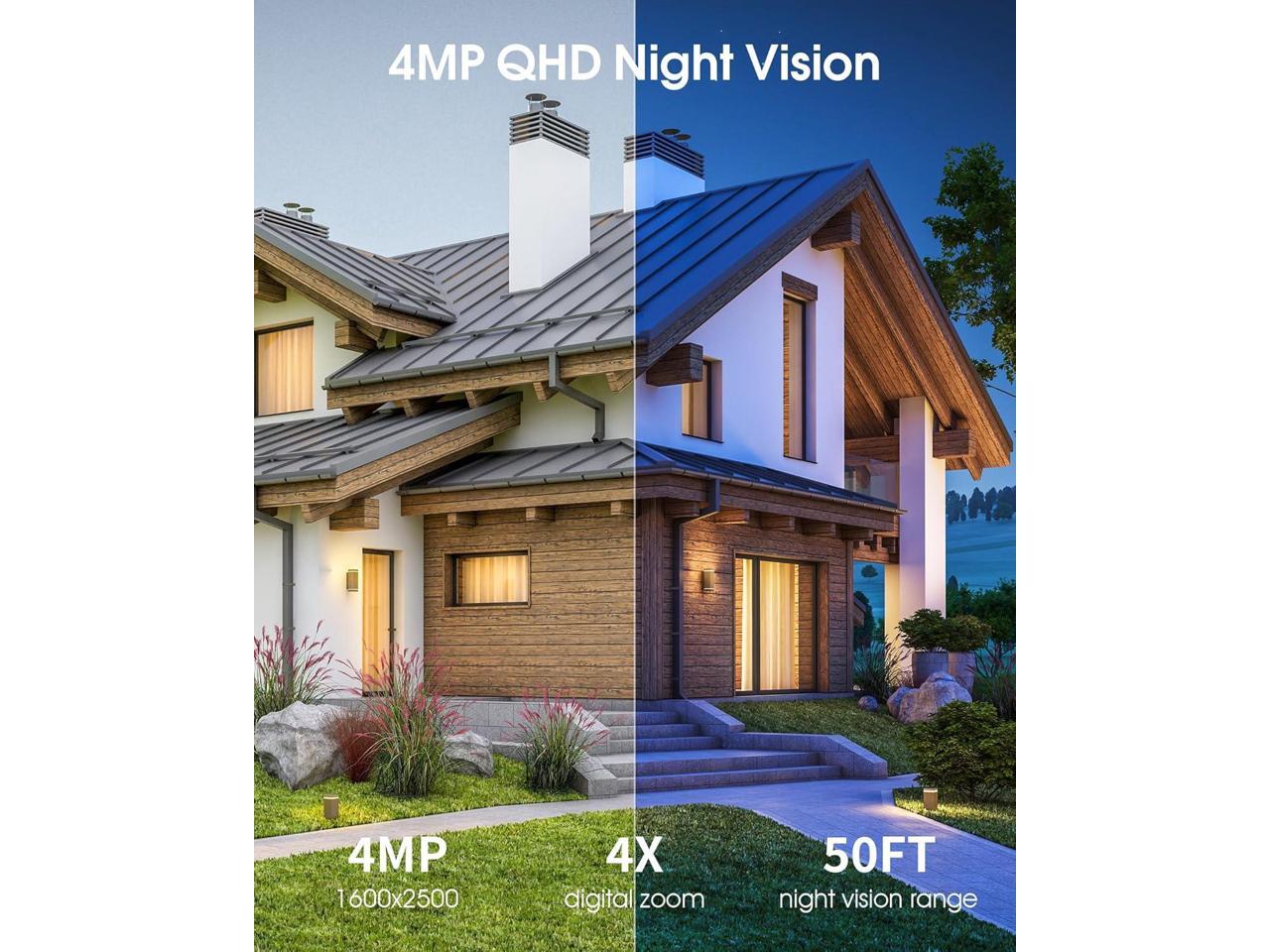 - 4MP Ultra HD Resolution: This security camera records in stunning 4MP Ultra HD (2560×1440 pixels), delivering twice the clarity of standard 1080p cameras. See every detail clearly, from facial features to license plates, day or night.