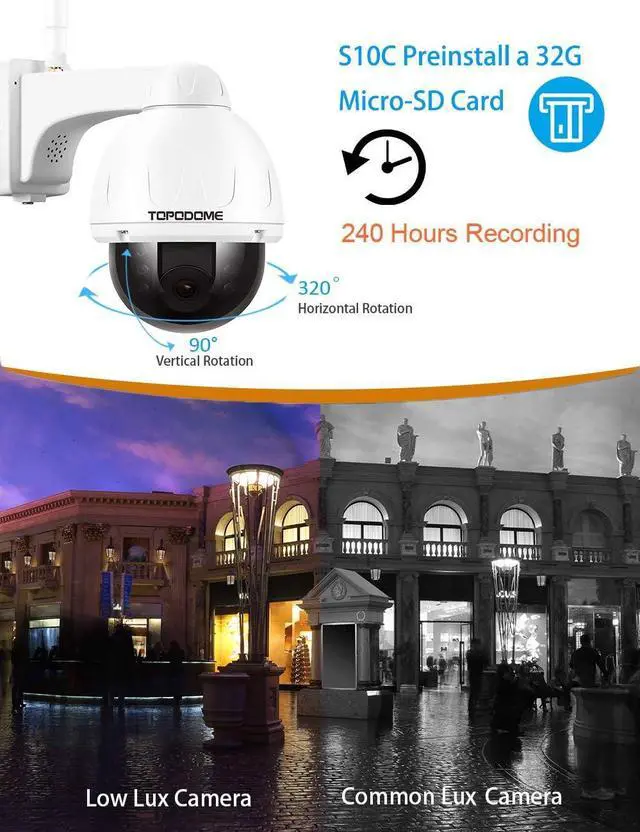 [HD 5MP & Low Lux Sensor]This outdoor dome security camera, with a built-in 5MP low-Lux image sensor, can achieve a maximum resolution of 2560x1920@25fps. With low-Lux feature, even in dim light, the image is still clear and will not turn on night vision immediately.