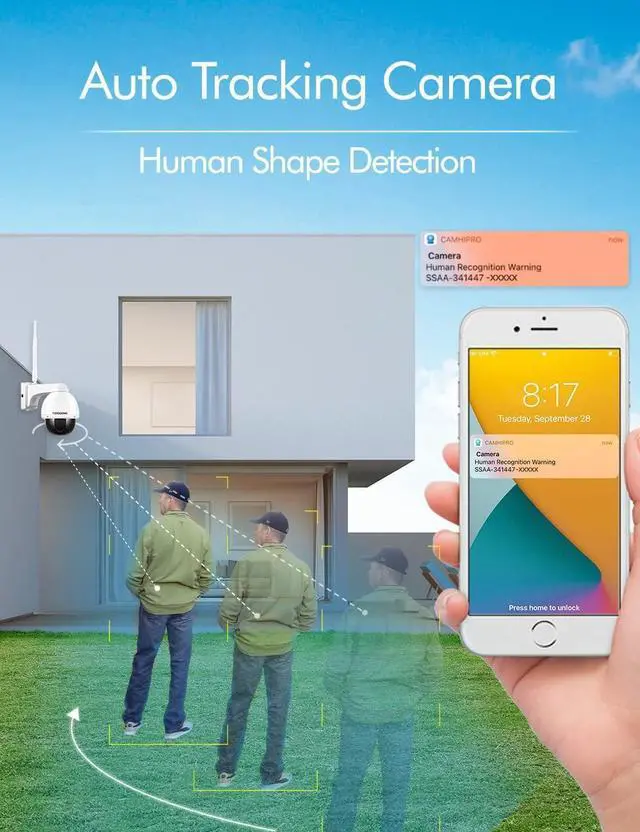 [Humanoid Detection & Siren Alarm]: The pan tilt security camera has two alarm trigger modes: motion detection and humanoid detection. When the two functions are combined, it can effectively filter the interference of animals, vehicles and rain and snow (that will cause invalid alarm). If the siren function is turned on, when the alarm is triggered, the camera speaker will emit a loud alarm to scare thieves away or remind people in the house.