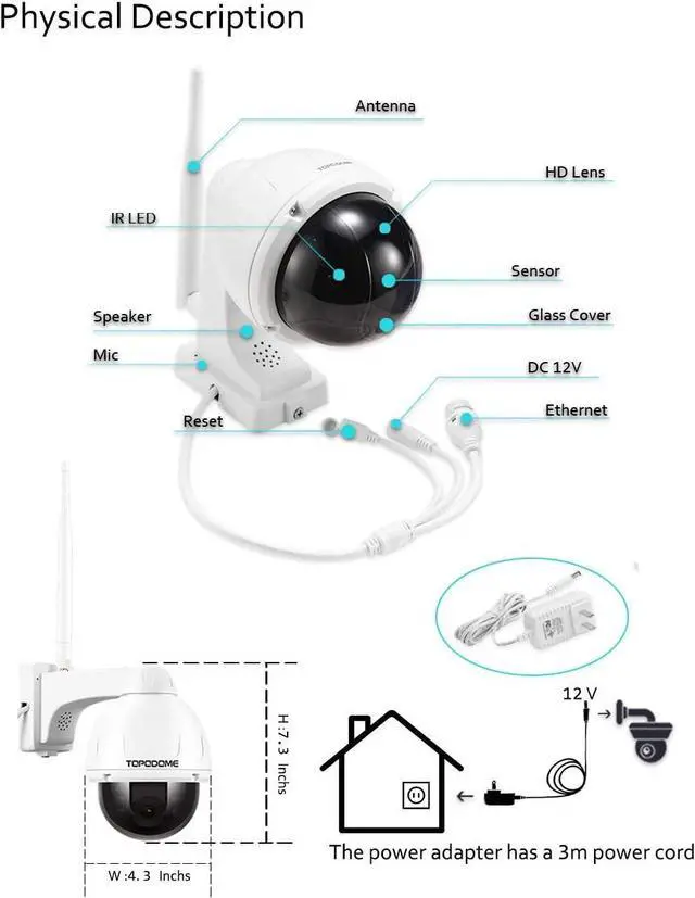 [Brown Cover & Invisible IR Leds]: This Wi-Fi outdoor camera is equipped with a brown cover and six high power Non-luminous 940nm LEDs, that will help camera hide the lens direction and avoid being judged by people about the current surveillance area, thereby improving the security level.