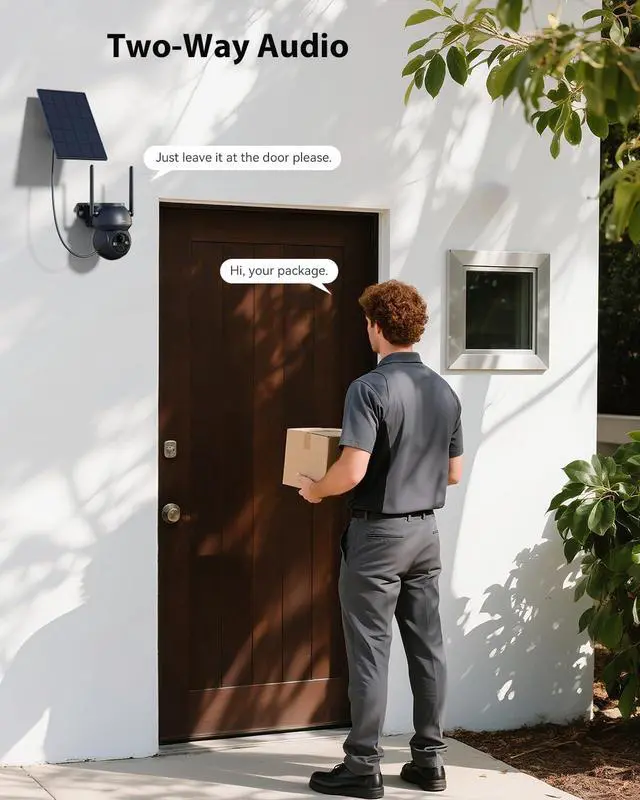 Two-way Talk & Share Your CameraFeaturing a built-in microphone and speaker, this Solar WiFi Surveillance Camera enables real-time two-way communication with family or visitors via the appideal for greeting loved ones or deterring intruders. Easily share camera access with family members through the app, allowing remote property monitoring anytime, anywhere, even when abroad.