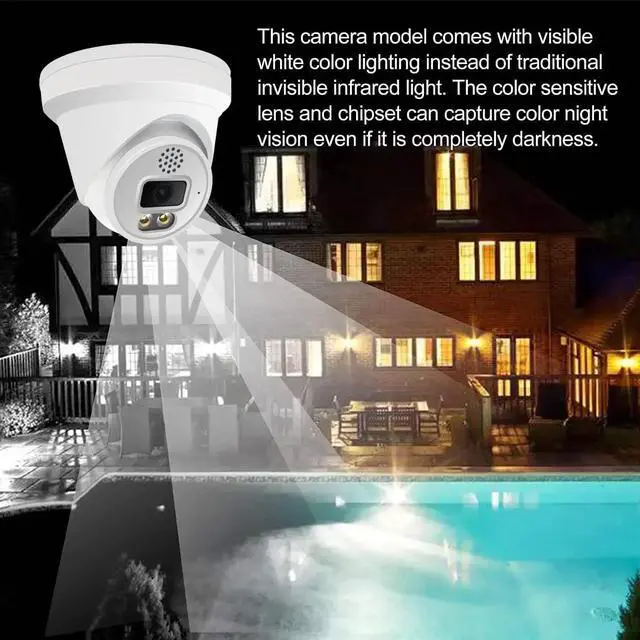 HD 6M Resolution & 24 hours Full-color Night Vision6 Megapixel Super HD dome camera, 1/ 2.8 " Progressive Scan CMOS, Max. 3072x2048 @25fps Super smooth quality, Full time color image even at night, capture more clearer sharper and colorful images and video, 0.01 Lux @ (F 1.2, AGC ON). 6mp Super HD video recording provides superior quality for reviewing fine details in heightened resolution.