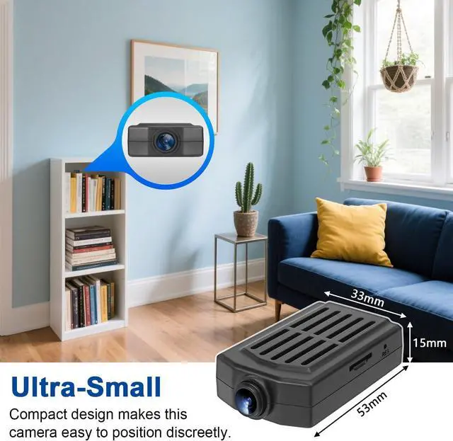 COMPACT DESIGN: Ultra-compact small camera, small form factor, can be placed in inconspicuous position for monitoring, very suitable for indoor monitorin