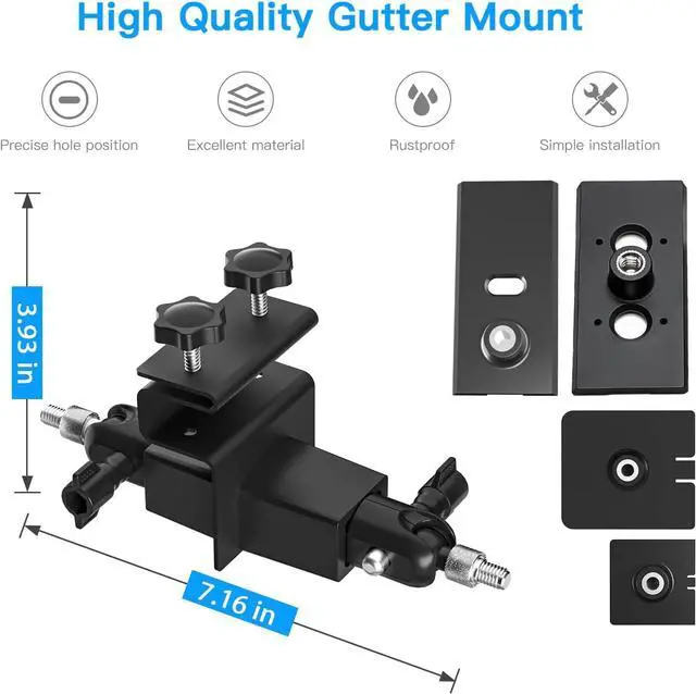 FLEXIBLE: Our HOLACA 2-In-1 gutter mount can provide 360-degree rotation and 90-degree tilt, and can be positioned at any angle without fear. If any of our products do not meet your expectations, please contact us and we will try our best to solve the problem.