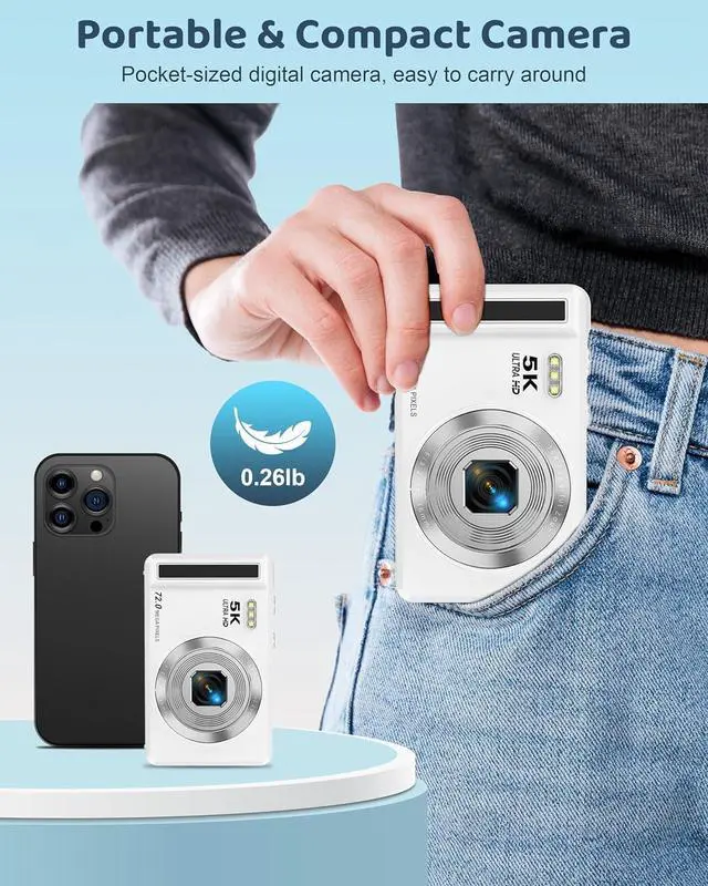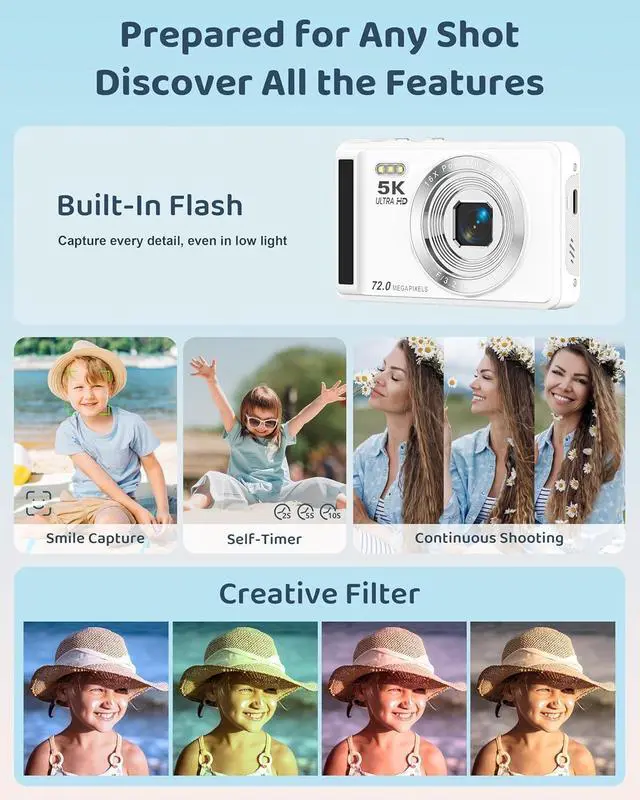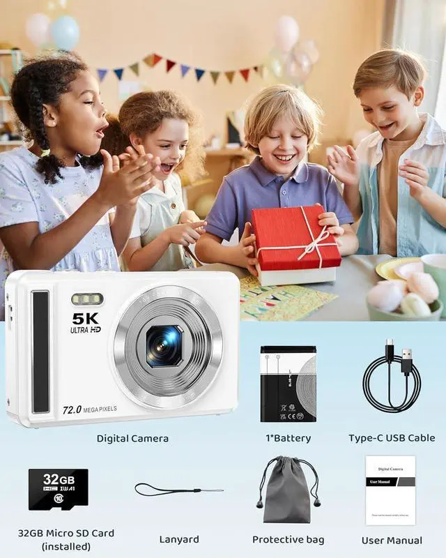 UHD 5K 72MP Digital Camera - Capture stunning 5K ultra HD video and 72MP professional photos with this digital camera. The upgraded CMOS sensor ensures every detail is sharp, turning each moment into a vivid memory. With ultra-high resolution and smooth image quality, this 5K camera lets you shoot effortlesslyno complicated settings needed. Preserve your most unforgettable moments in stunning clarity