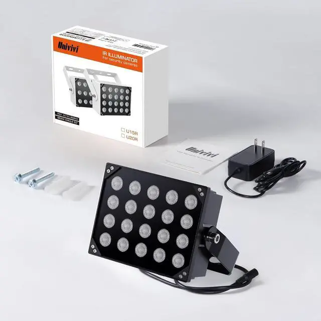 90° WIDE ANGLE 20W - Its real wide angle IR flood light, no hot spot. 20 high power LEDs, providing more illumination for your CCTV cameras getting perfect night vision performance.