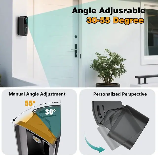 Optimize Viewing AnglesAdjust the viewing angle of your Blink Doorbell from 30 to 55 degrees to optimize coverage and visibility around your entryway. Customize the field of view to maximize coverage of your entryway, ensuring you can keep a close eye on who approaches your home.