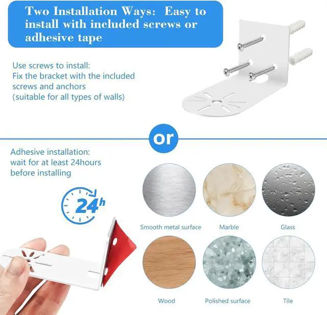 Multiple Mounting OptionsYou can install the bracket with adhesive tape or included screws, just takes a few minutes to install, never worry about it falling off