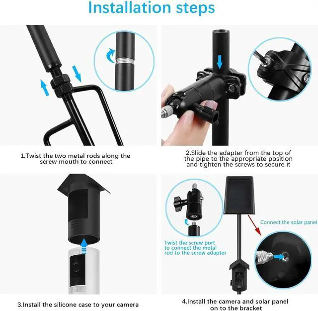 The ground stake mount and silicone cover skin is compatible with stick up Cam battery camera and solar panel. Compatible Other Cameras with 1/4 screw mount 31.49 - 47.24 in adjustable ground stake bracket.