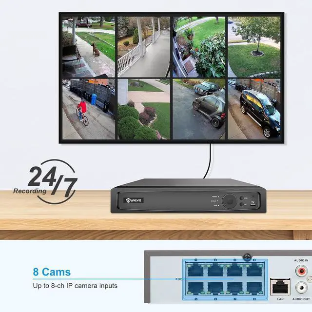 Human & Vehicle Detection: The Anpviz 8ch 4K NVR is upgraded with AI functionality to support human and vehicle detection. For the NVR' s human and vehicle detection feature to work, it must be used with Anpviz' s H series PoE cameras.