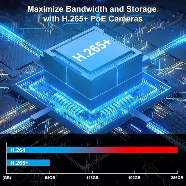 IP input: This 8ch NVR supports multiple video formats including H. 265+, H. 265, H. 264, and H. 264+. With H. 265+ compression, it effectively reduces storage space and costs by up to 75%. It has a maximum incoming bandwidth of 80Mbps, records up to 8 cameras at 4K resolution, and allows playback.