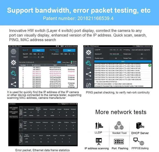 [Professional testing tools] Built-in special tools for Hik and DH, support batches of fast setting of Hik and DHcameras. At the same time, it has built-in dedicated testing tools for other brands of cameras, which can be compatible with most existing cameras. Use it to make your installation simple and efficient.