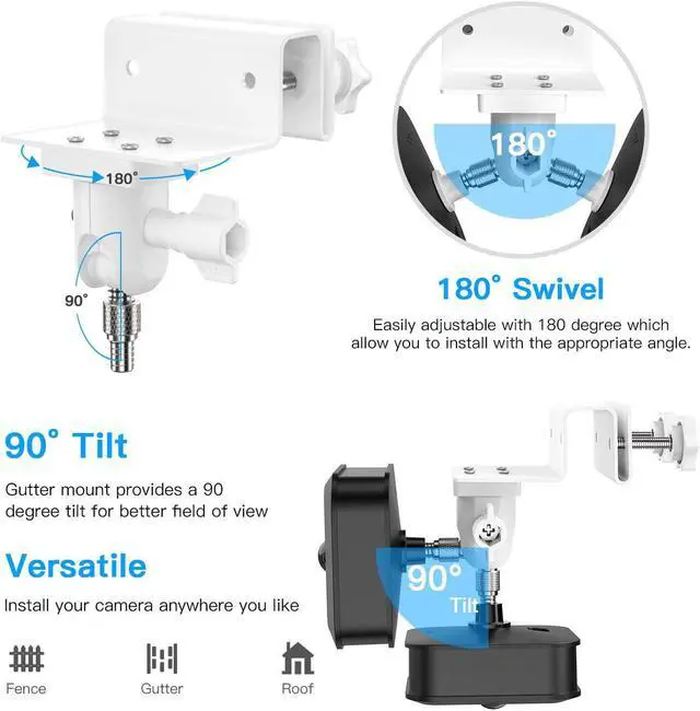 FLEXIBLE VISIONOur HOLACA gutter mount can provide 360-degree rotation and 90-degree tilt, and can be positioned at any angle without fear.