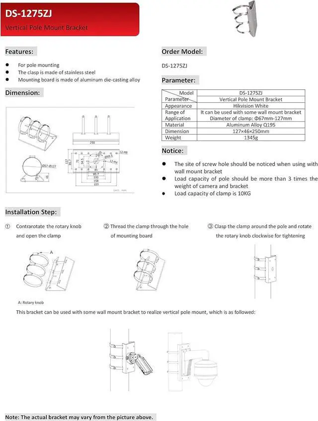 Compatible with all types of Hik surveillance cameras and able to be used in conjunction with any hik-Compatible wall mount camera brackets