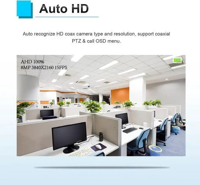 Universal Signal Compatibility 1-channel BNC input for CVBS video (NTSC/PAL auto-adapt), RS485 control with 30+ protocol support (600-115200bps baud rate), and 1-channel audio input to verify sound functionality. Perfect for multi-brand security systems.