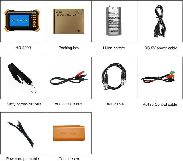 Complete Kit & Support Includes tester, 5V/2A USB charger, BNC/RS485/audio cables, and user manual.