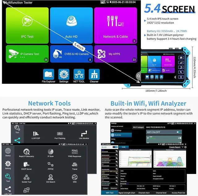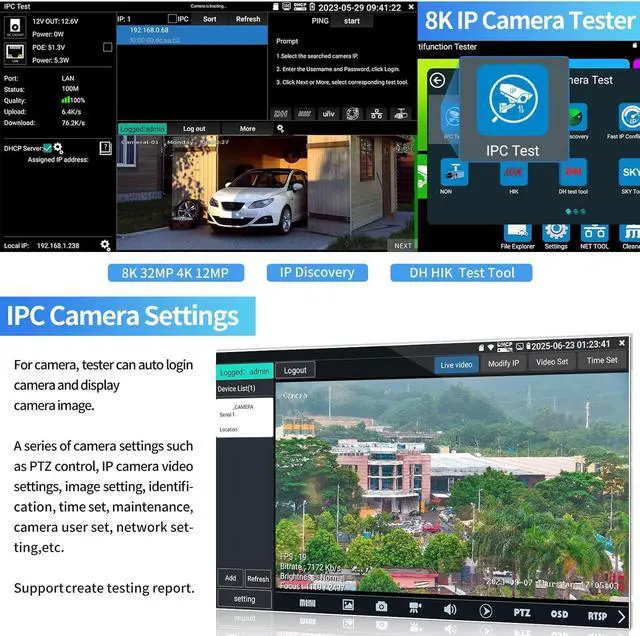 [Professional testing tools] Built-in special tools for HIK and DH, support batches of fast setting of Hik and DH cameras. At the same time, it has built-in dedicated testing tools for Ovif and other brands of cameras, which can be compatible with most existing cameras. Use it to make your installation simple and efficient.