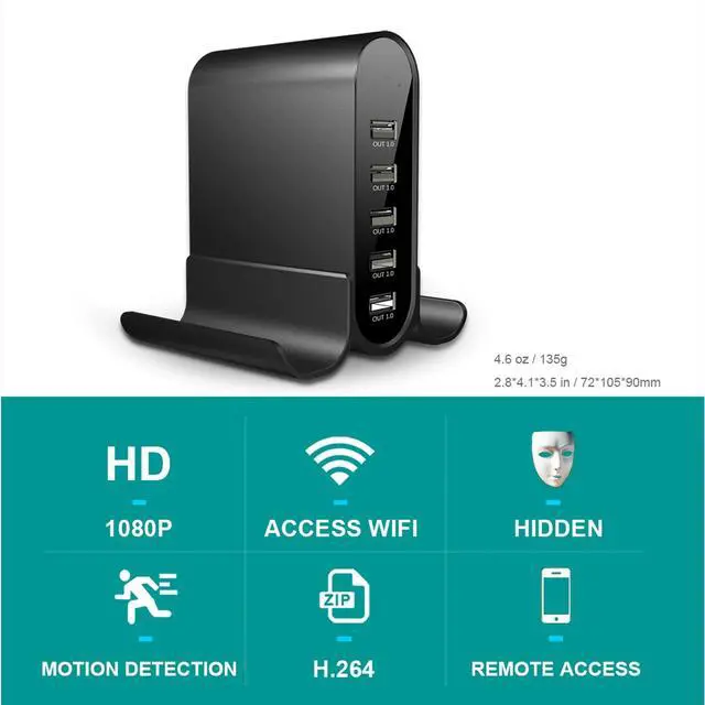 Integrated Charging: Equipped with 5 USB ports, enabling simultaneous charging of multiple devices alongside its camera function.