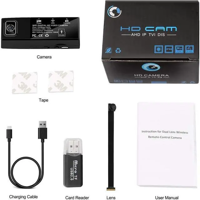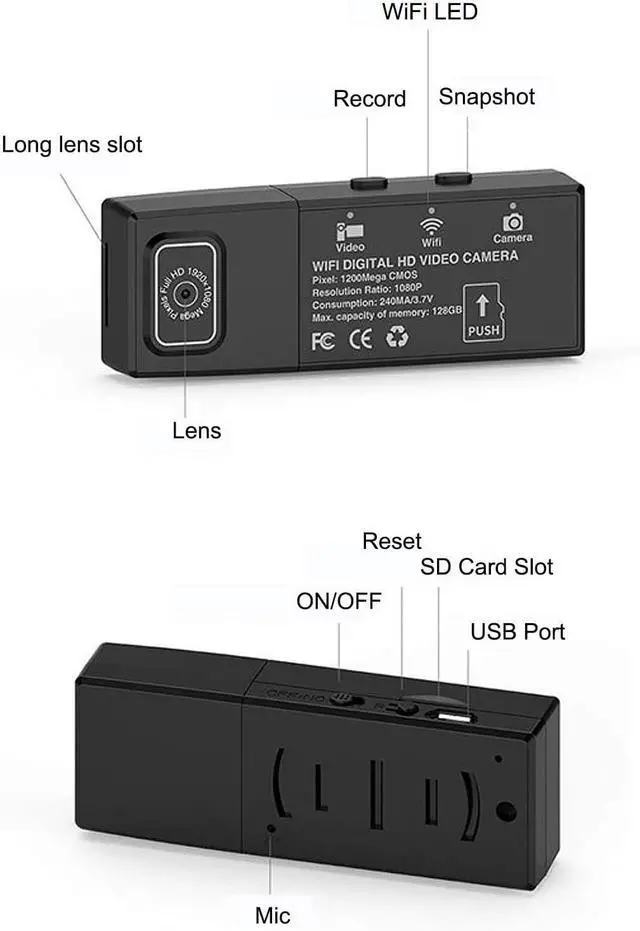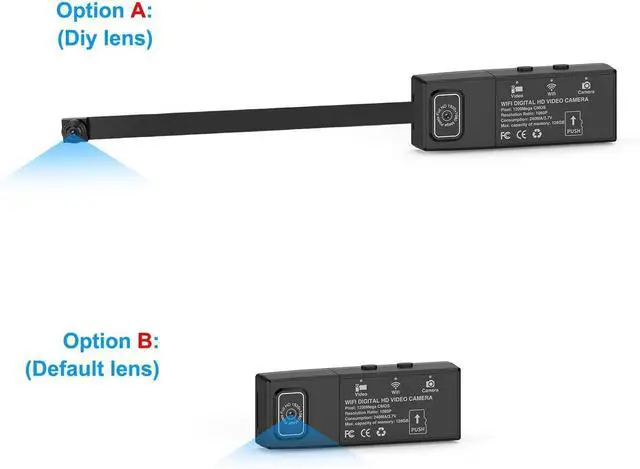 Dual detachable lens camera perfect for home SECURITY: unique new concept design leading Mini camera in the market. Dual lenses are full 1080P HD resolution. Built-in lens is installed inside of the case and you can exchange it with the longer lens if you like. You can put this spy hidden camera anywhere and it is totally not noticeable while the camera is recording (set LED not light up in use).