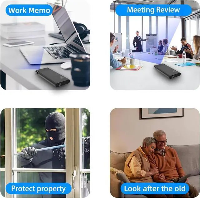 10,000mAh Dual-Function Power Bank: Functions as a reliable portable charger while simultaneously recording video. The lens is completely hidden behind a magnetic glass cover, with no visible indicators. Perfect for keeping devices powered and spaces secure during travel, in hotels, or at the office.
