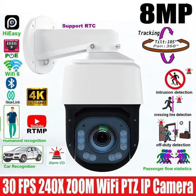 240X ZOOM 4K 8MP 30fps Wireless WiFi POE Speed Dome PTZ IP Camera Smart Tracking