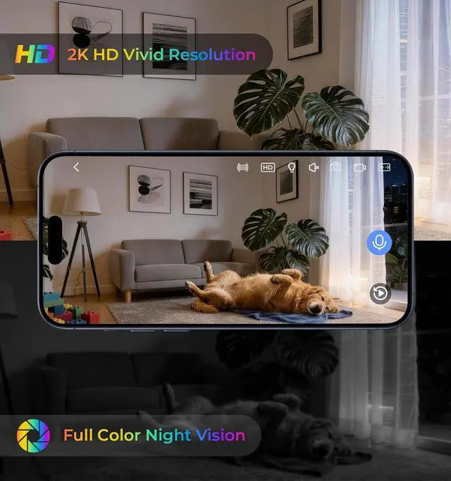 2K Full HD Clock Camera with Color Night Vision: Captures crystal-clear Ultra HD video via advanced image sensor; features Black Light Night Vision for 24/7 true-color monitoring day and night.