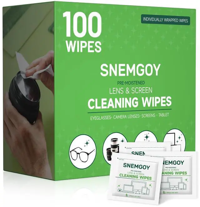 • WHAT YOU GET: You will receive 100 count SNEMGOY lens cleaning wipes that are individually wrapped and pre-moistened. were fully dedicated to your satisfaction. If you are not satisfied with your order or have any questions or concerns, please contact us by email, and we will assist you.