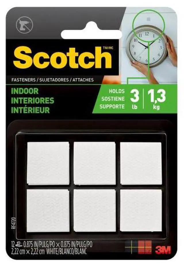 When you need an undetectable, strong and permanent hold, reach for Scotch Indoor Fastener Squares. These clever, hook-and-loop fasteners are ideal for mounting remotes, keeping your floor rugs from slipping, and your seat cushions in place. They're so easy to use and hold up to 3 poundsno tools needed. So whether you're hanging a key rail in your entryway or just need to ensure little feet don't slip on your rug, rely on the stabilizing power of Scotch Indoor Fastener Squares.