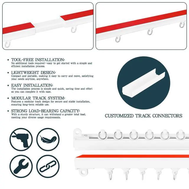 The track features strong adhesive tape and durable PVC material. However, it’s not suitable for heavy curtains and is best used with lightweight curtains.