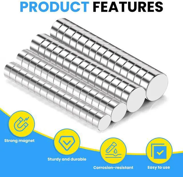 High Quality Magnets- The small round neodymium magnets are made of brushed nickel silver finishing material, High Quality materials, have high resistance to demagnetization, corrosion and oxidation. So you won't have to worry about the mini crafts magnets losing their pull as they get older