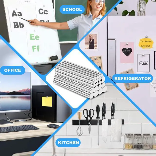 Unlimited Uses-The tiny strong magnets can be used as refrigerator magnets, whiteboard magnets, map magnets, kitchen magnets, shower door magnets, office magnets, or used for scientific purposes, arts and crafts or school classroom and so on