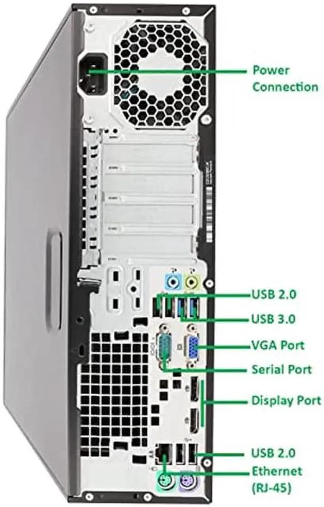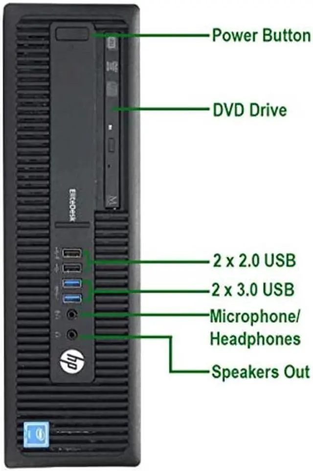 ? General Features ???HP EliteDesk 705 G2 Small Form Factor (SFF) ??AMD Pro A4-8350B R5 6 Compute 2C + 4GB Processor??8GB Ram??1TB Hard Disk Drive (HDD) ??Windows 10 Professional (64 Bit) ? Accesories Inclueded ???19 Inch LED Monitor??Wireless Keyboard And Mouse??Wifi And Bluetooth Adapter? Connectivity ???1x VGA Port??2x Display Port??1x Serial Port??DVD Drive??Microphone & Headphone??USB Ports??Sound Integrated? Expansion Slots & Bays ??? (1) Low-Profile PCI Express x16 Slot?? (2) Low-Profile PCI Express x1 Slots?? (1) External 5.25" Drive Bay?? (1) Internal 3.5" Drive Bay?? (1) External 3.5" Drive Bay.