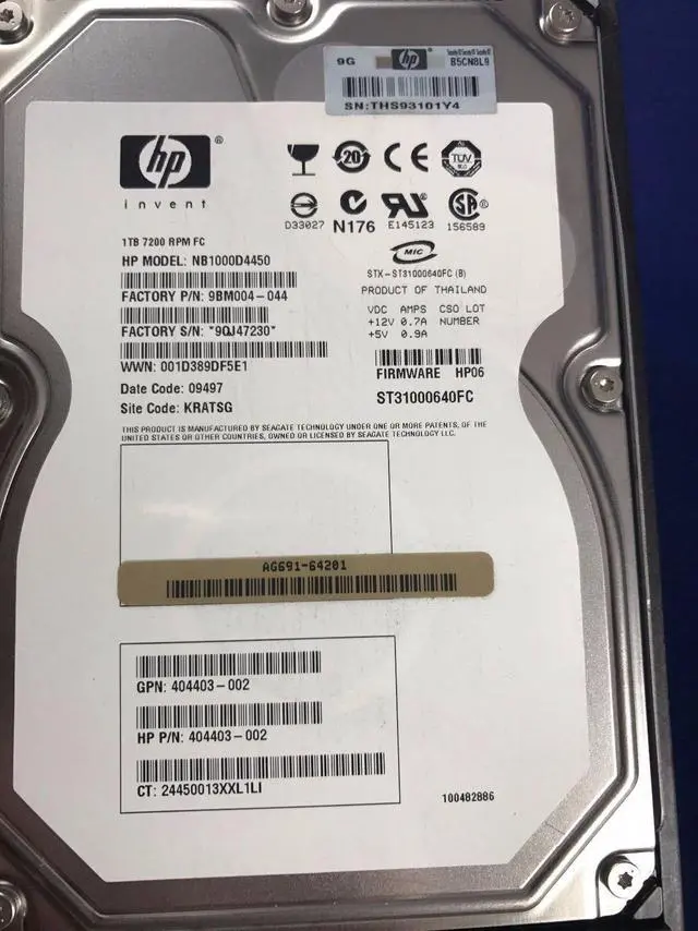 HP 1TB 3.5" Hard Drive AG691B 671148-001 AG691B 454414-001 Fata AG691A: