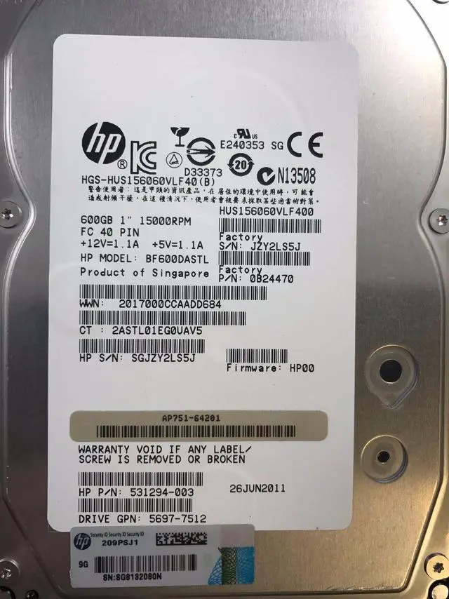 HP 600GB 3.5" Hard Drive AP751A 15K FC EVA M6412A AP751B 531995-001 BF600DAJZT