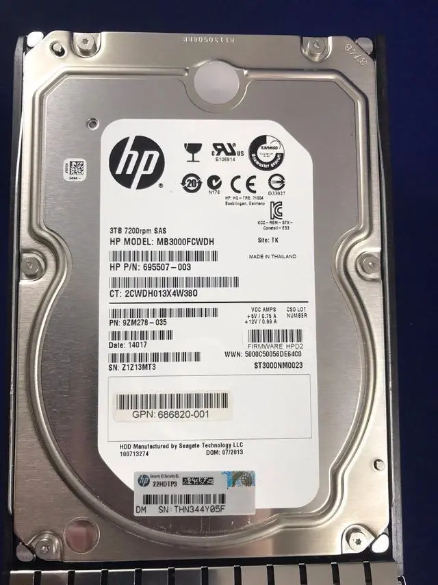 HP 3TB 3.5" Hard Drive QR479A M6612 6G SAS 7.2K RPM LFF MIDLINE 687045-001:
